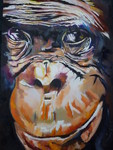 2010Een realisitisch portret van een aap in een goede gemoedstoestand in warme en rustige kleuren.
